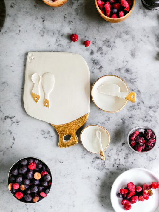 Gold Cheeseboard & Cutlery set (7 pieces)