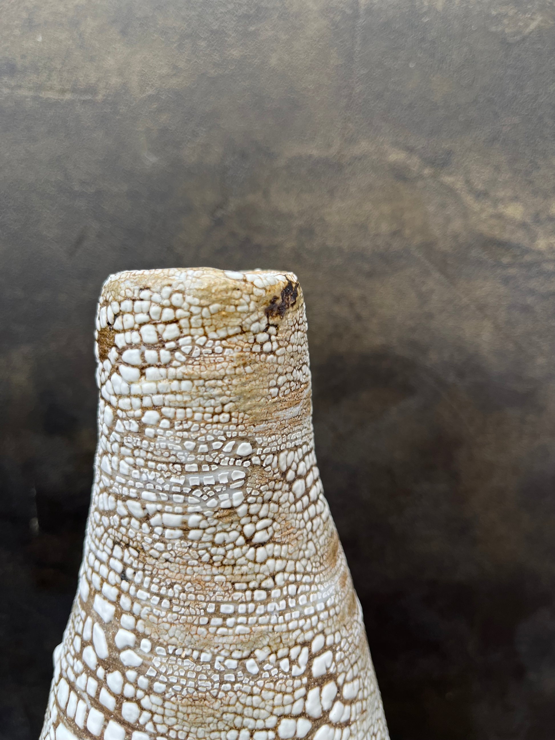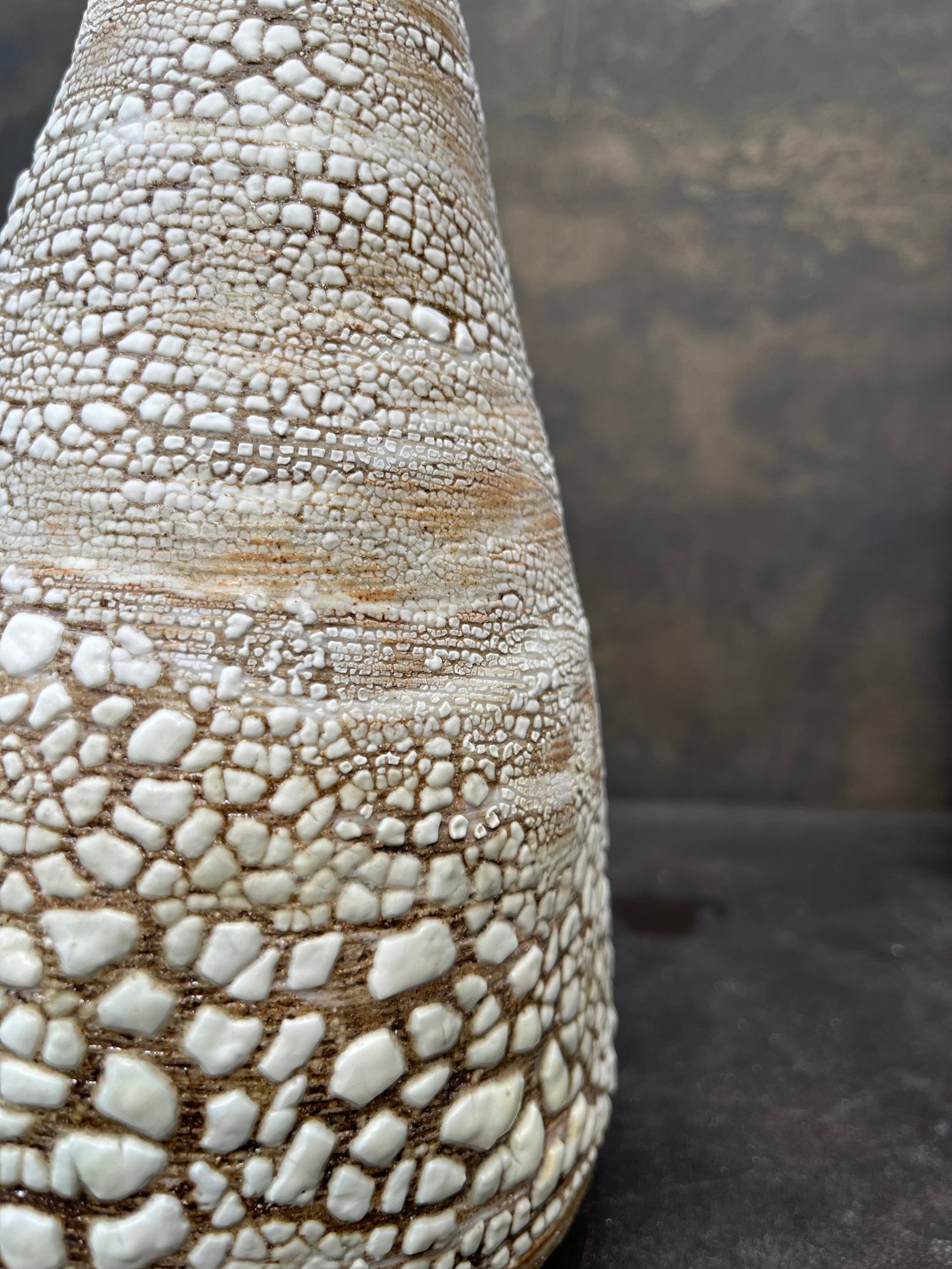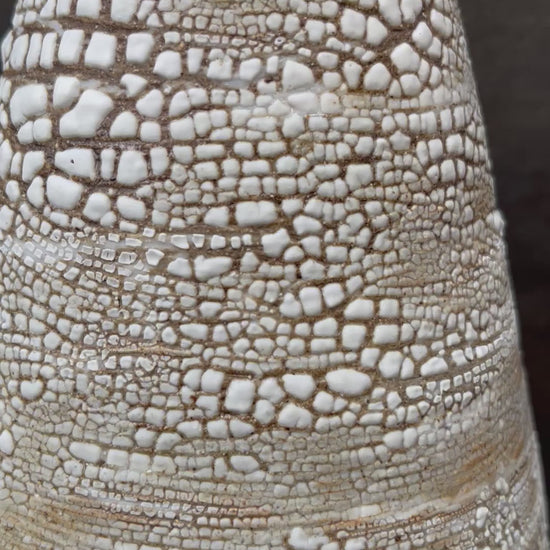 Introducing the Michigan Vase — a one-of-a-kind ceramic masterpiece inspired by the serene beauty of frozen Lake Michigan. Crafted with meticulous attention to detail, this exquisite vase boasts a pristine white glaze adorned with captivating crackle patterns reminiscent of icy fissures found on the lake's surface.