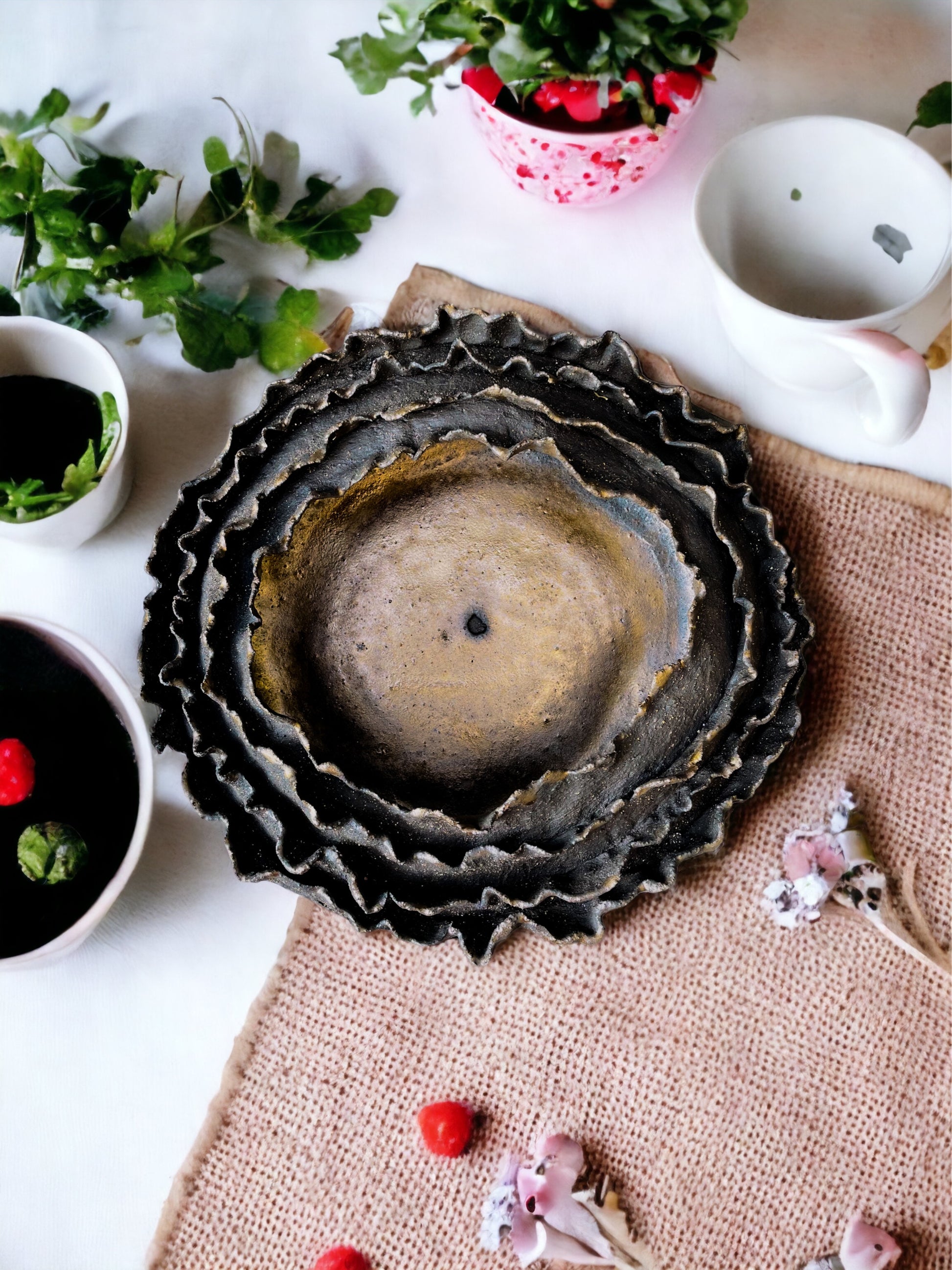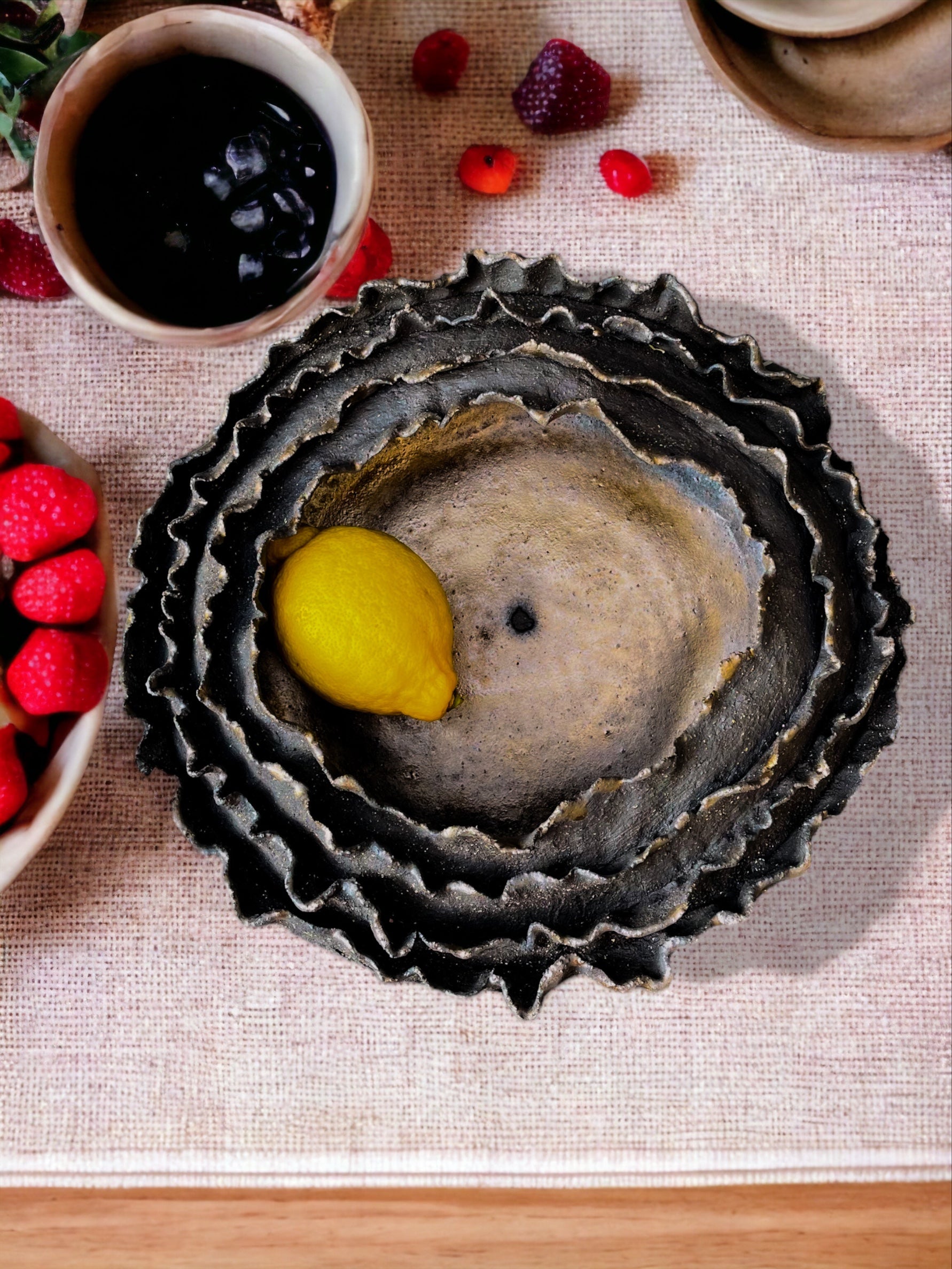 Introducing our exquisite Noir Rose Bowl, meticulously crafted from the finest black clay, embodying both luxury and durability. Elevate your space with its captivating design and rich, deep hue, adding a touch of intrigue to any setting. The Noir Rose Bowl is not only a testament to superior craftsmanship but also a unique statement piece that seamlessly blends artistry and functionality. Experience the allure of timeless beauty and quality with every glance at this remarkable creation.